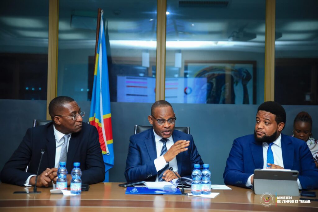Kinshasa, le 12 septembre 2025 — Dans une démarche résolument tournée vers l’amélioration du climat des affaires et la consolidation de la confiance des investisseurs, le Ministre d’État, Ministre du Plan, Guylain Nyembo Mbwizya, et le Ministre de l’Emploi et Travail, Ferdinand MASSAMBA, se sont réunis ce vendredi au siège du Ministère de l’Emploi et Travail. Ce briefing stratégique s’est tenu en présence des animateurs de la Cellule du Climat des Affaires, ainsi que des points focaux des deux ministères concernés.
