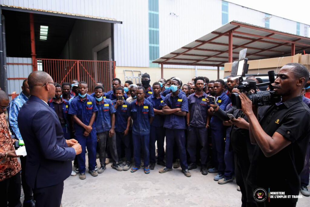 Première société inspectée : Fatima Congo, entreprise à capitaux chinois spécialisée dans la fabrication et la vente de meubles haut de gamme, employant plus de 90 personnes. À peine arrivé sur les lieux, le ministre a relevé plusieurs irrégularités majeures.